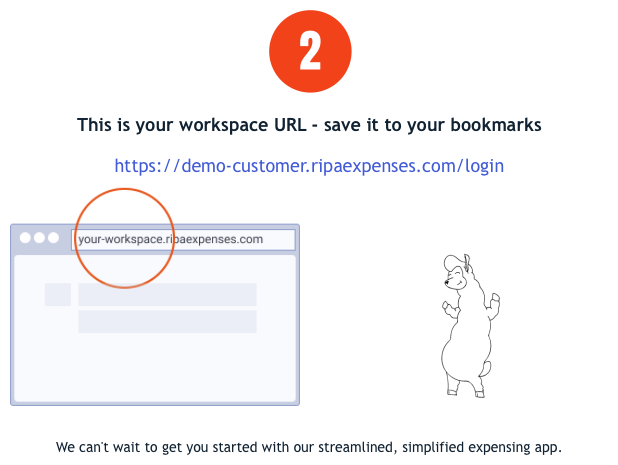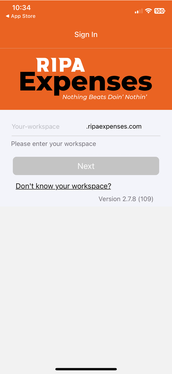 If you cannot find the "Welcome" e-mail or don't want to fetch that on your mobile device for any reason, you will need to know your workspace name which you can find in your original "Activate your RIPA Expenses account" e-mail - your workspace URL is given as shown here: